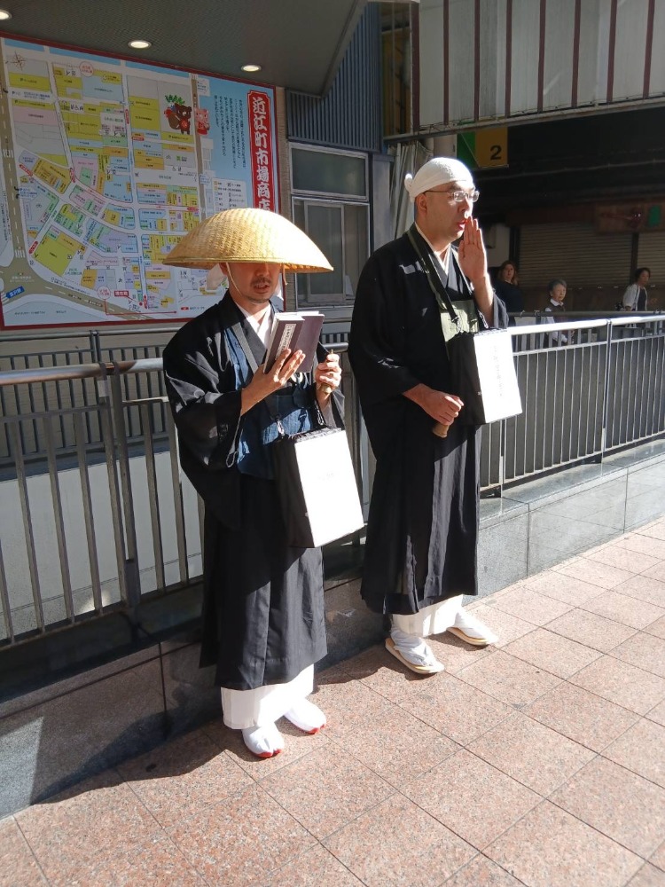 祈りの日托鉢 第15回 活動報告 トップ 復興支援活動 祈りの日托鉢 第15回 活動報告 祈りの日托鉢 第15回 活動報告日時:令和7年10月1日(水)15時~16時過ぎまで場所:近江町~香林坊を往復参加者:県内寺院3名浄財:4,121円所感:天候に恵まれ、気持ちよく歩く事が出来ました。香林坊側の商店の方が、鈴の音を聴いて毎回喜捨下さり、同じ復興への想いを共有できる事に、大変励みになっております。