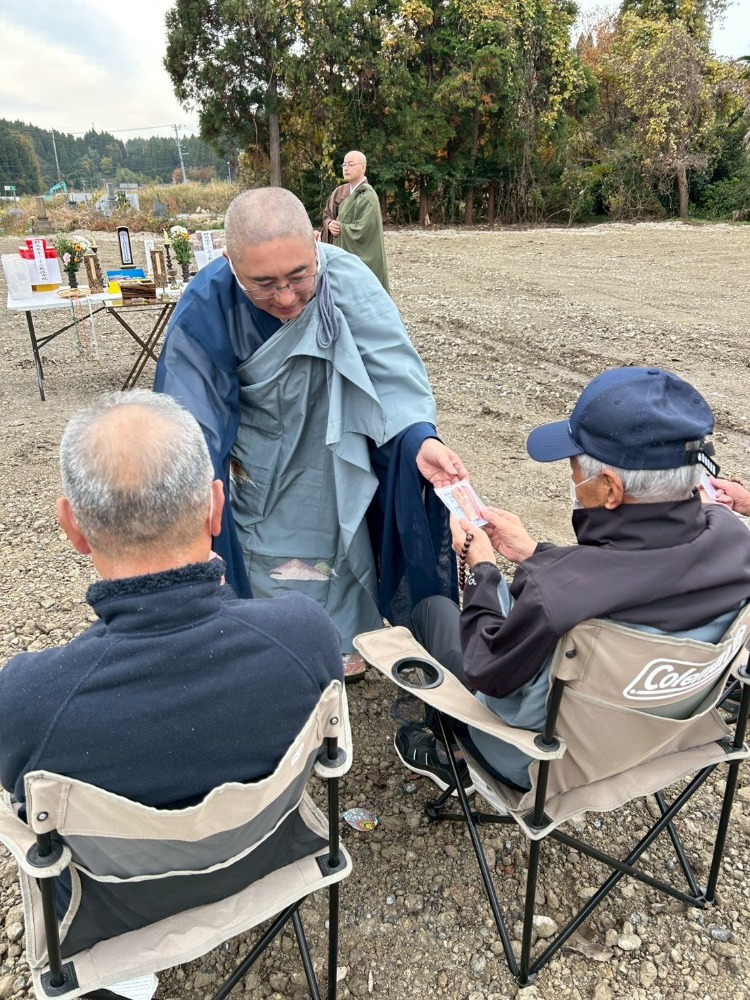 金峰寺にて復興祈願法要並びに被災地慰霊法要 トップ 復興支援活動 金峰寺にて復興祈願法要並びに被災地慰霊法要 11月27日(木)13:30~宝立町金峰寺にて群馬県と石川県内合わせて14名の僧侶が随喜し復興祈願法要並びに被災地慰霊法要が営まれました。法要後、檀信徒の皆様に解体された寺院の柱や梁に使われていたケヤキを材料にした手作りのお守りが住職より配られました。 関連寺院 金峯寺