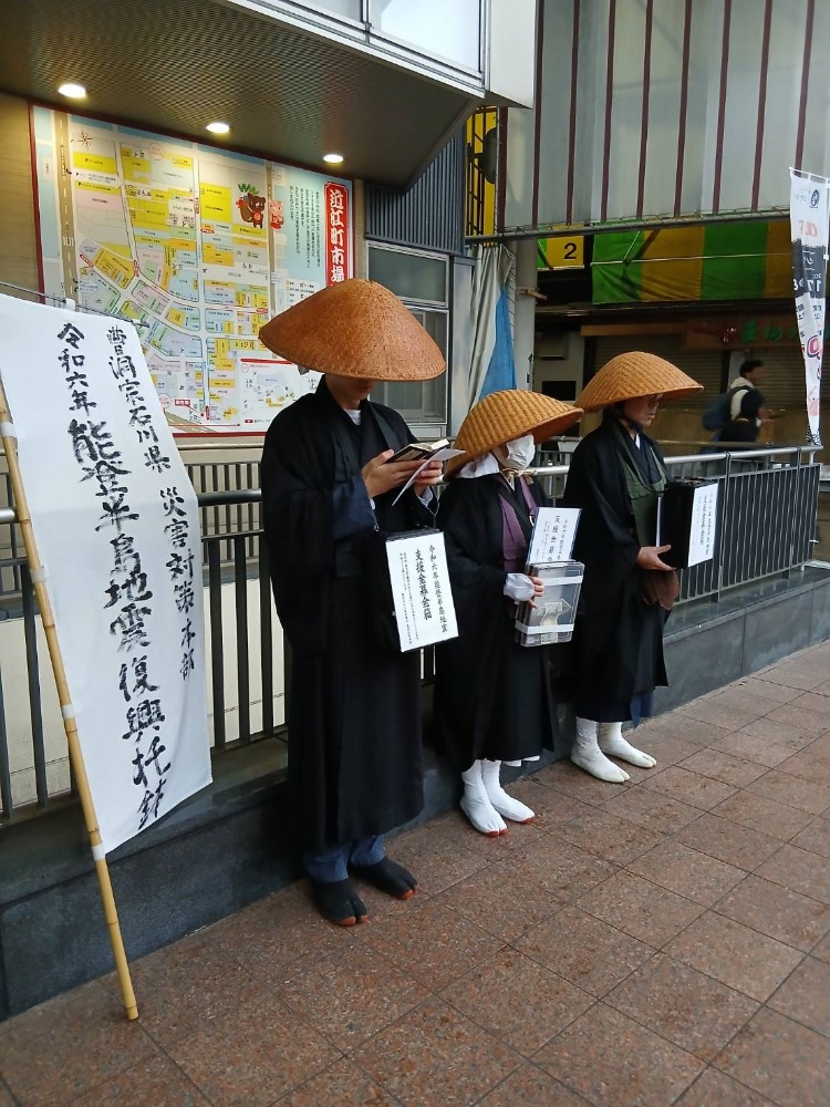 初詣に行く子ども連れのご家族の方々が、お子さんを通して浄財を喜捨くださる事が度々あり、復興が未だに進まず時間を要する現状ながらも、温かく感じました。現状の周知と支援、その気持ちを繋げるこの托鉢は、改めて大切だと思いました。