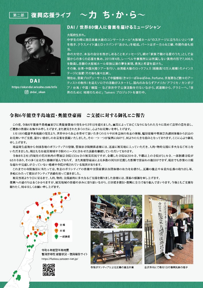 震災直後から能登に寄り添い続けてきたミュージシャン・DAIによる復興応援ライブ