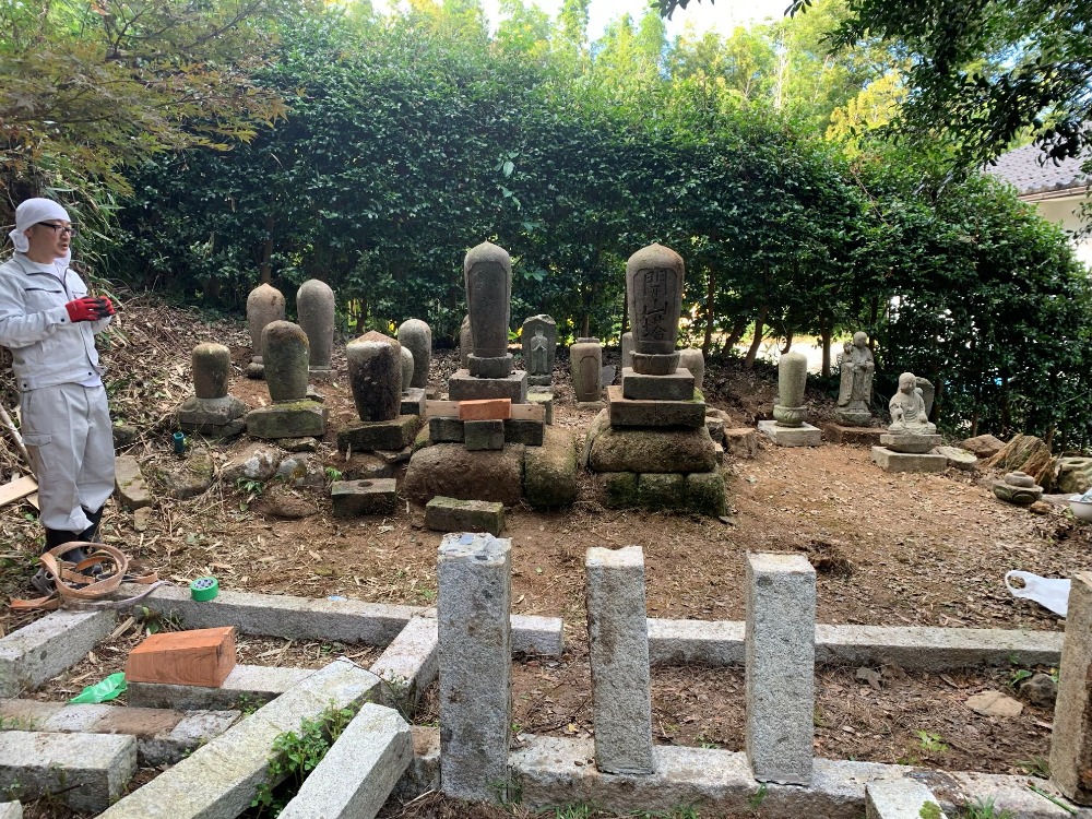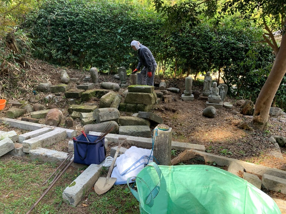 長齢寺 境内の石塔並びに石柱おこし作業、腐った木の切り倒し並びに撤去作業