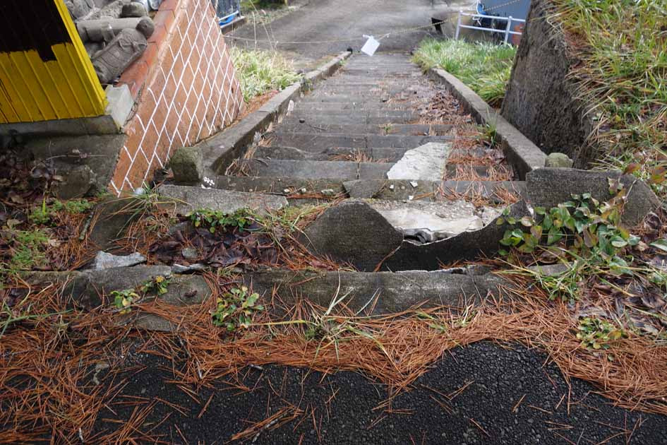 階段に大きな亀裂