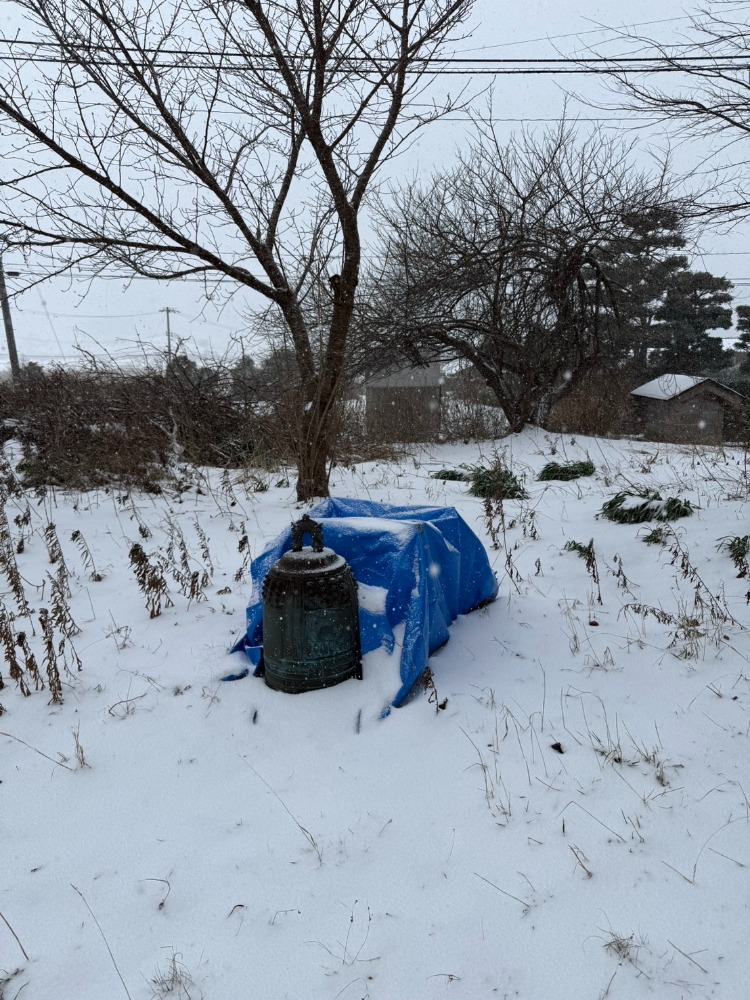 本堂/ブルーシートがかけられている