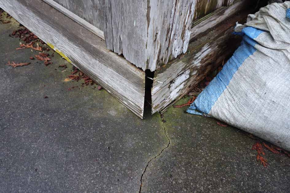 本堂/土間の亀裂により土台の仕口が開き