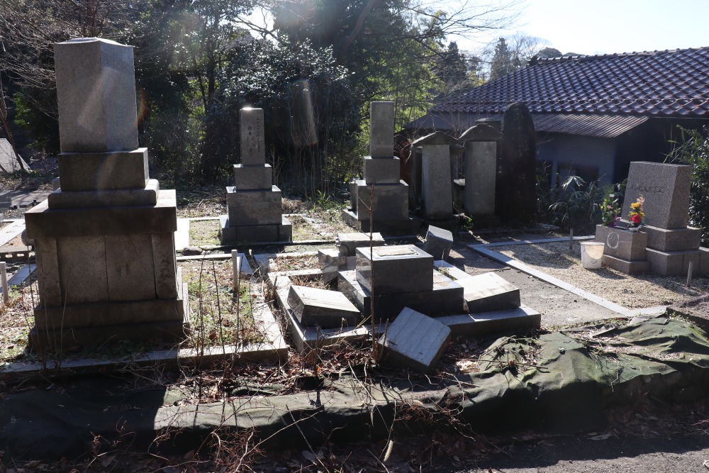 墓が転倒破損