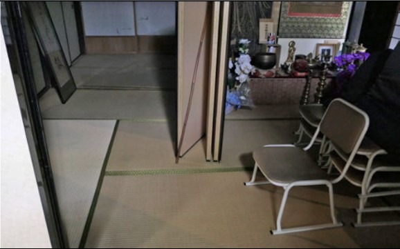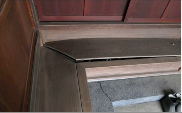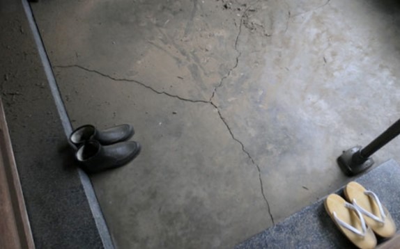 庫裡玄関/土間に亀裂
