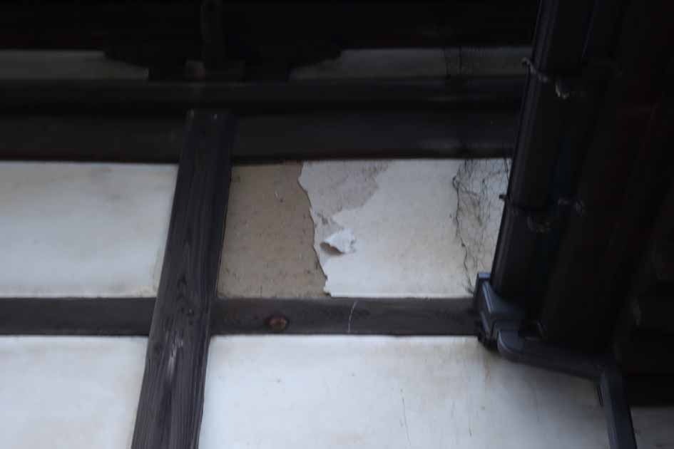 本堂/漆喰壁が一部剝がれ