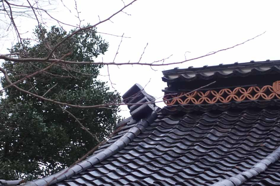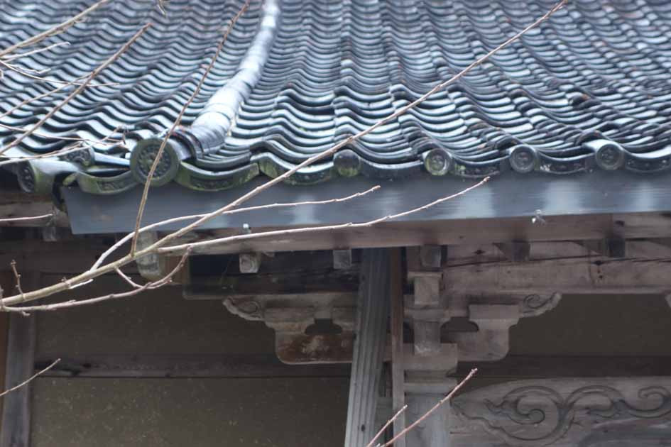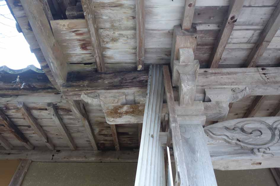 本堂/向拝の組み物が大きく緩んで屋根に傾き