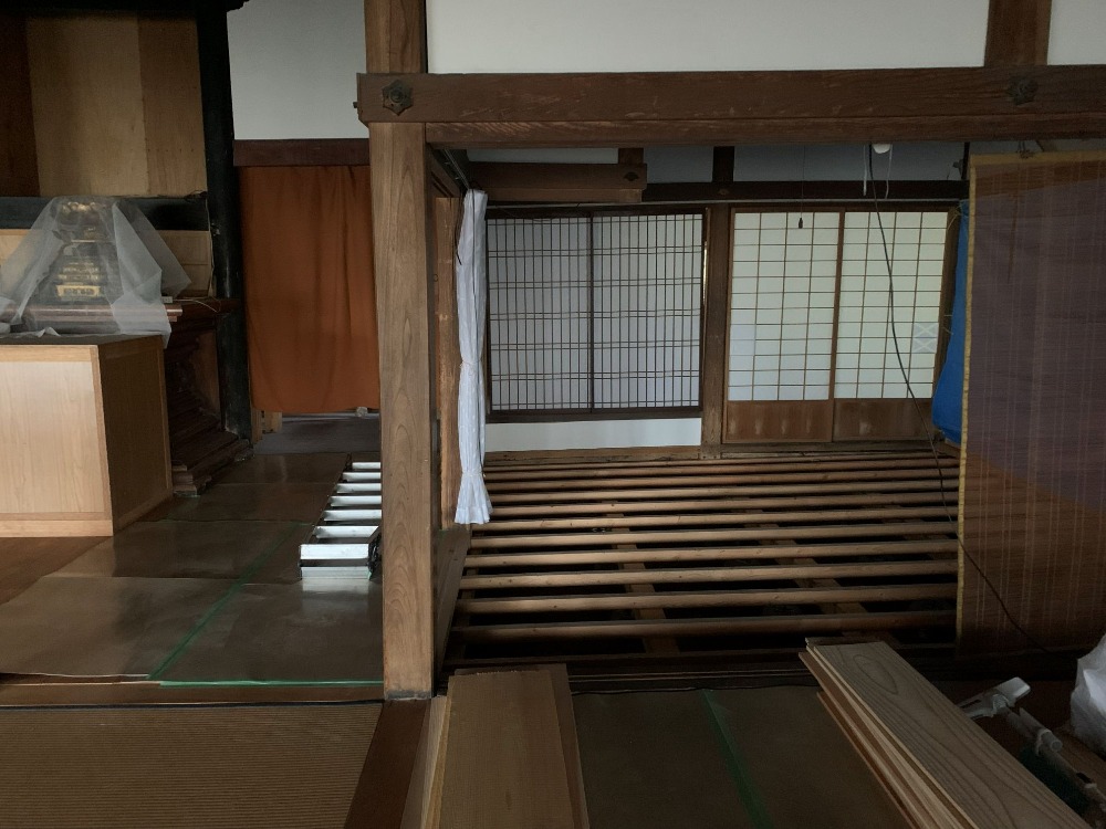 山門袖塀撤去、車庫・納屋解体済み