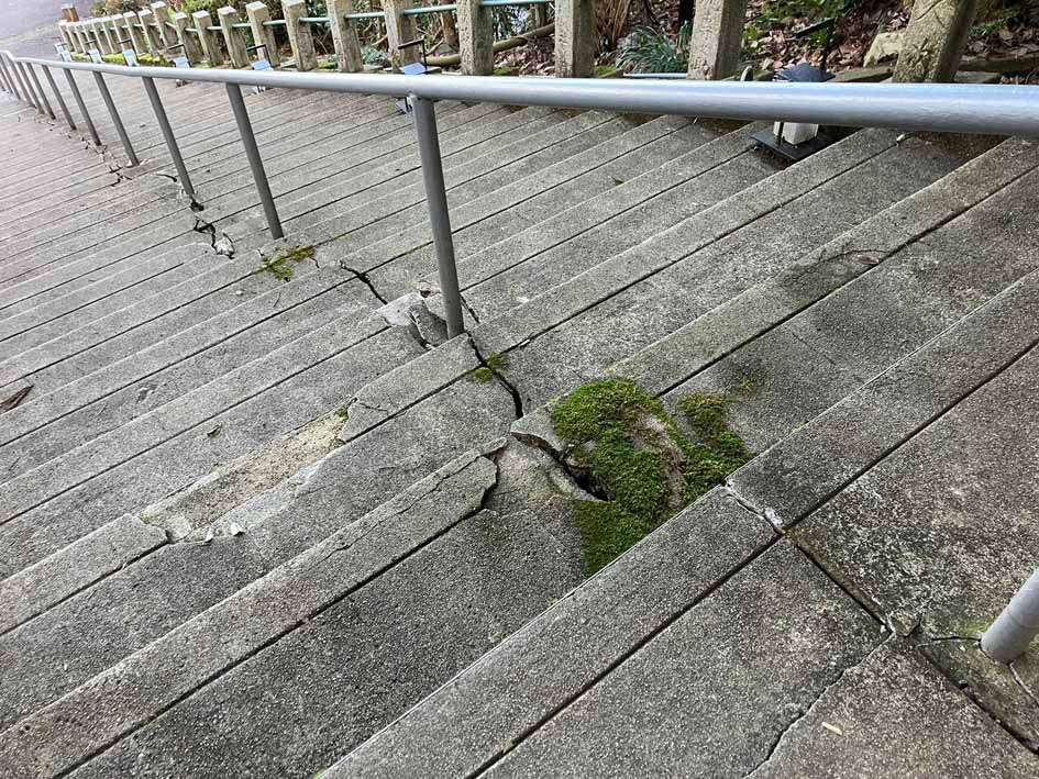 本堂/半壊、庫裏/半壊、鐘楼/一部損壊、山門/一部損壊、他/敷地内階段などに亀裂・石積擁壁が崩落