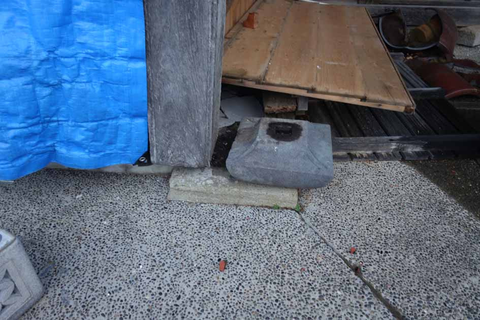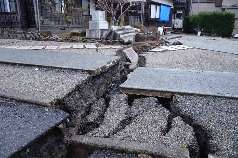 境内の大きな複数の地割れは、砕石を埋めて仮復旧としている