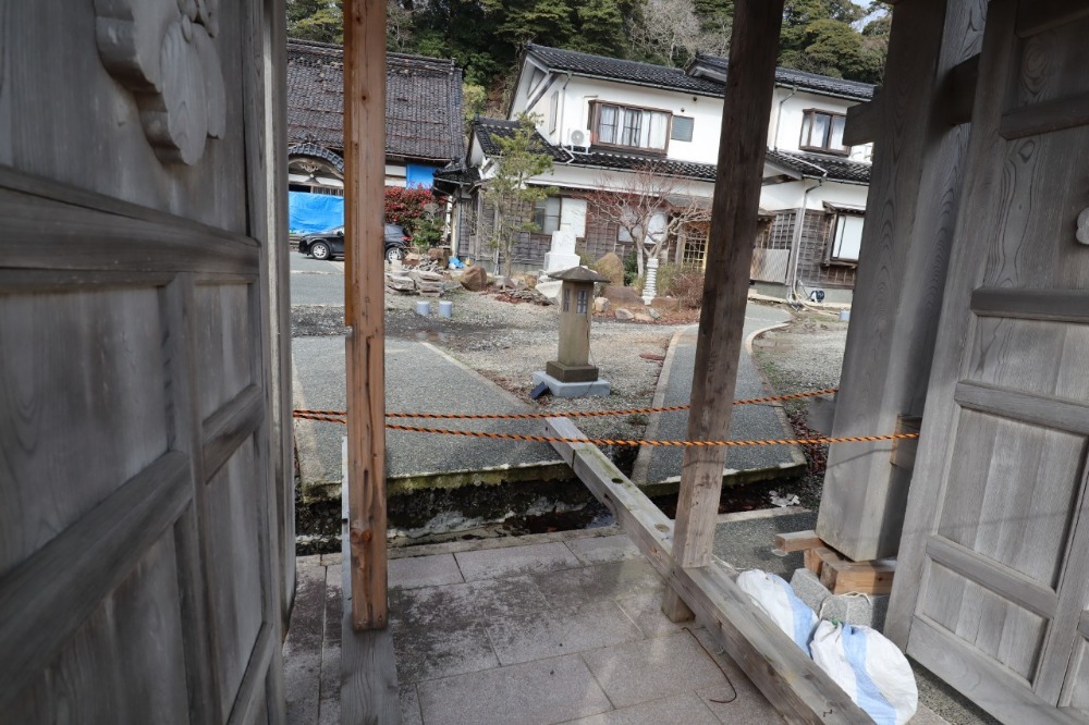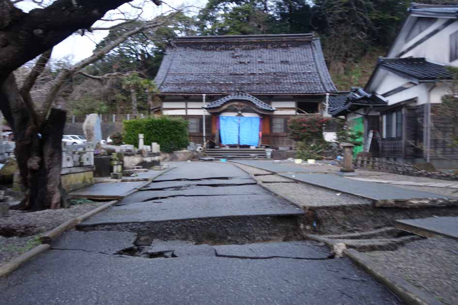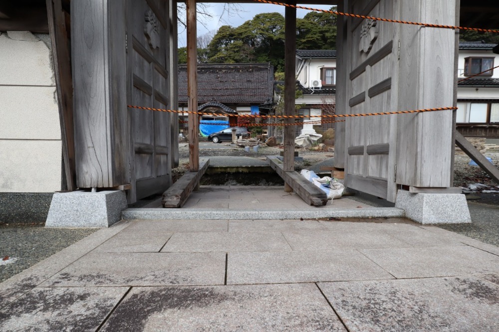 本堂/全壊、庫裏/半壊以上、山門/半壊以上、他/地蔵堂が倒壊・敷地内に大きな亀裂があり危険な状況